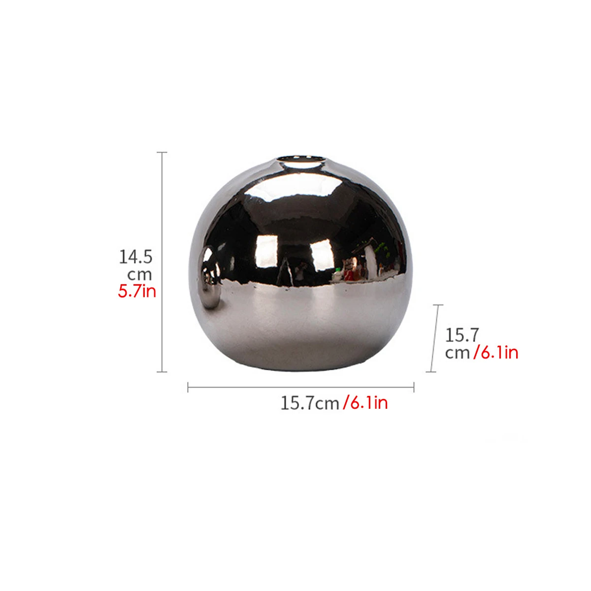 Le vase argenté rond se marie avec une variété de couleurs et de textures grâce à sa surface réfléchissante. Utilisez-le pour apporter une touche contemporaine à votre intérieur tout en mettant en valeur vos plantes préférées, qu’elles soient naturelles ou artificielles.