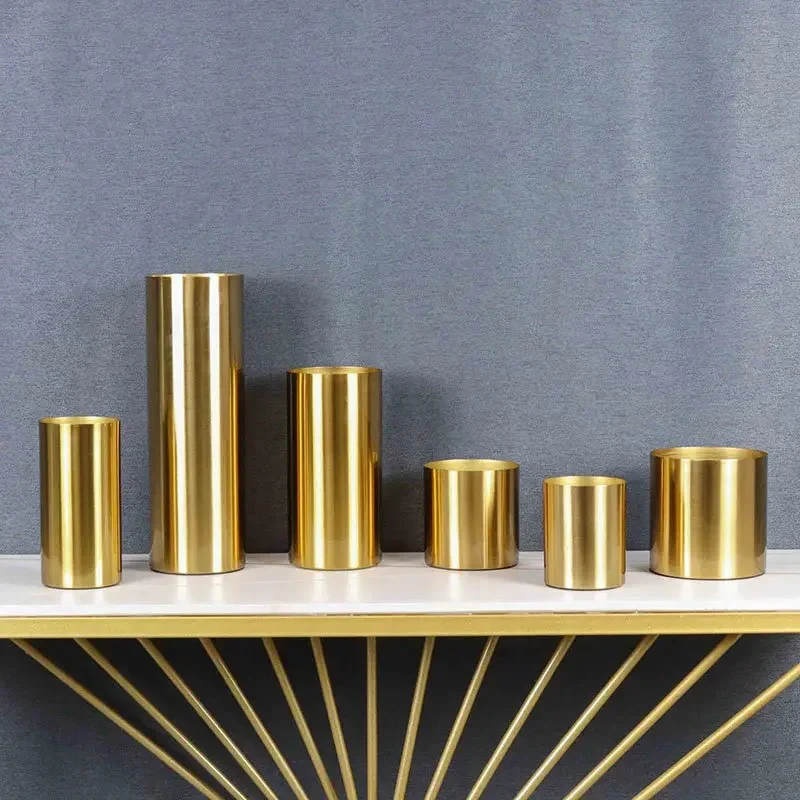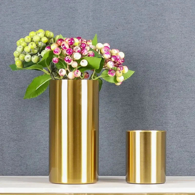 Vase droit cylindrique en métal raffiné et élégant