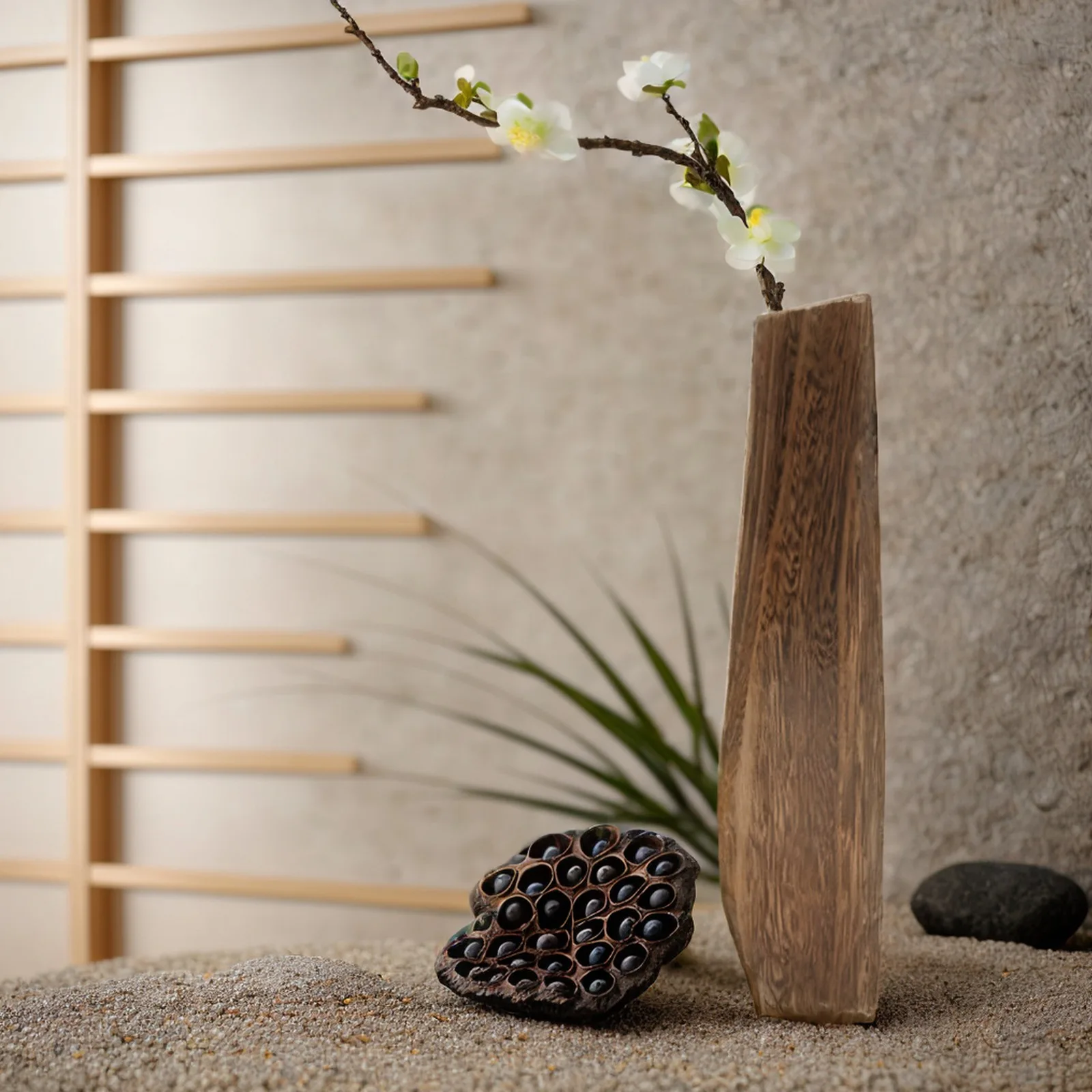 Lorsqu’il s’agit de créer une atmosphère apaisante, le vase en bois haut est un choix judicieux. Ses lignes épurées et son matériau naturel font de lui un allié parfait pour instaurer un esprit zen chez vous. Il se marie à merveille avec des plantes vertes ou des fleurs séchées, soulignant leur beauté naturelle.