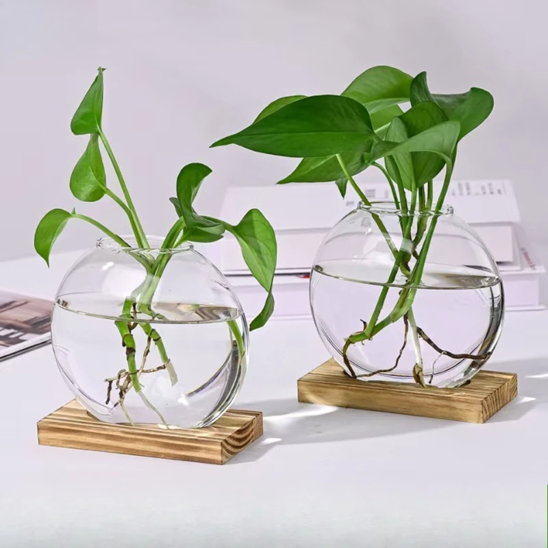 Découvrez le vase en verre avec support bois pour sublimer votre intérieur avec élégance.