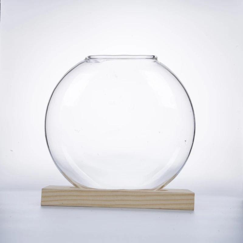 vase en verre avec support bois